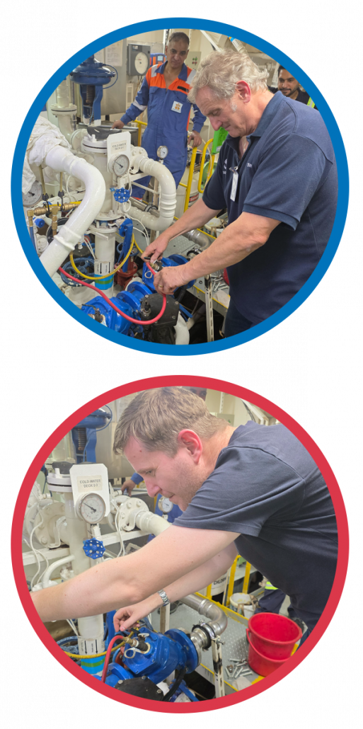 Undeterred, Ultravalve acted quickly to replan and redeploy resources. Engineers Scott Warby and Alan Parkes returned to the port when it was safe for the ship to dock, working through the night on Sunday to ensure all 27 RPZ valves were tested and compliant before the ship’s early departure.